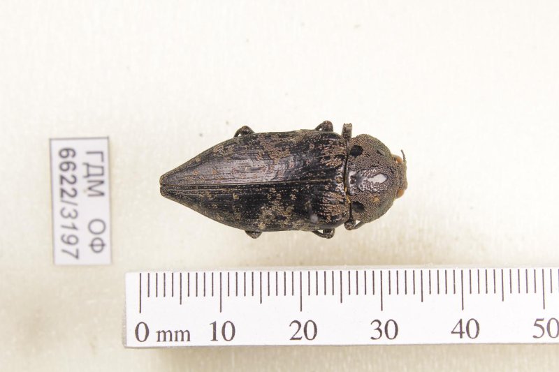 Сухое насекомое. Златка. Capnodis miliaris (Klug, 1829). Классификация: Членистоногие Arthropoda, Насекомые Insecta, Жуки Coleoptera, Златки Buprestidae