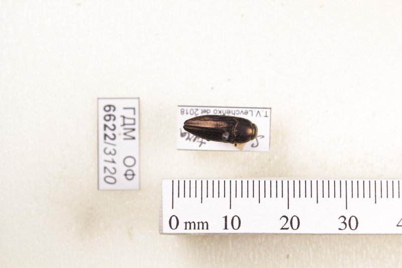 Сухое насекомое. Златка. Sphenoptera rauca (Fabricius, 1787). Классификация: Членистоногие Arthropoda, Насекомые Insecta, Жуки Coleoptera, Златки Buprestidae