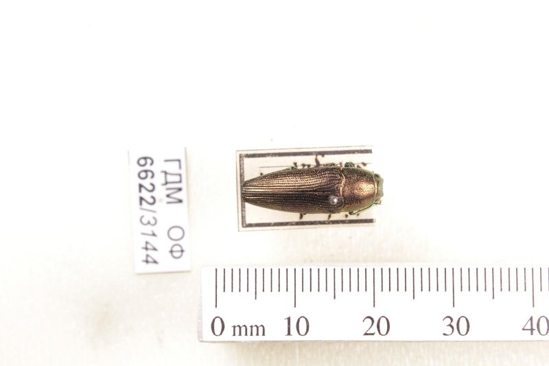 Сухое насекомое. Златка. Sphenoptera splendidula Gory et Laporte, 1839. Классификация: Членистоногие Arthropoda, Насекомые Insecta, Жуки Coleoptera, Златки Buprestidae
