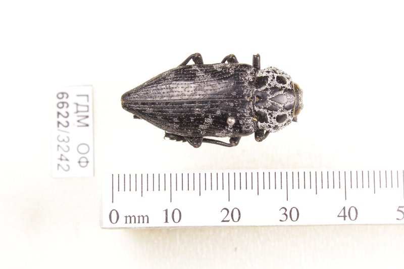 Сухое насекомое. Златка. Capnodis cariosa (Pallas, 1776). Классификация: Членистоногие Arthropoda, Насекомые Insecta, Жуки Coleoptera, Златки Buprestidae