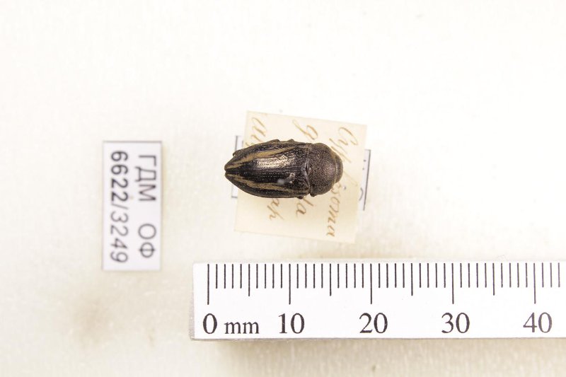Сухое насекомое. Златка. Cyphosoma lawsoniae (Chevrolat, 1838). Классификация: Членистоногие Arthropoda, Насекомые Insecta, Жуки Coleoptera, Златки Buprestidae