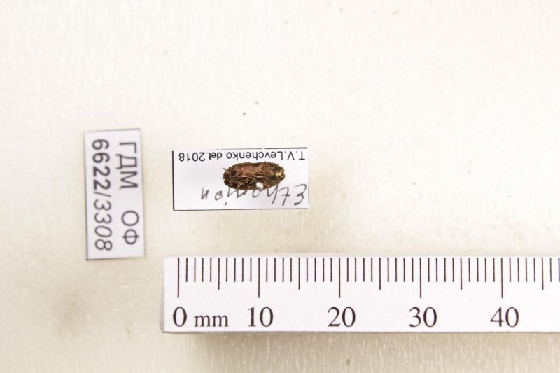 Сухое насекомое. Златка. Ethonion breve (Carter, 1923). Классификация: Членистоногие Arthropoda, Насекомые Insecta, Жуки Coleoptera, Златки Buprestidae