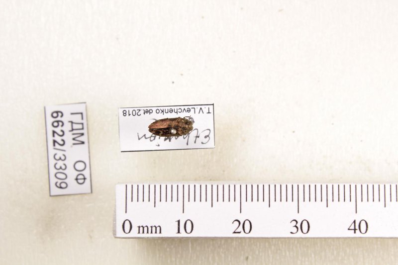 Сухое насекомое. Златка. Ethonion breve (Carter, 1923). Классификация: Членистоногие Arthropoda, Насекомые Insecta, Жуки Coleoptera, Златки Buprestidae