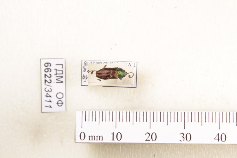 Сухое насекомое. Златка. Diphucrania cupripennis (Guérin-Méneville, 1830). Классификация: Членистоногие Arthropoda, Насекомые Insecta, Жуки Coleoptera, Златки Buprestidae