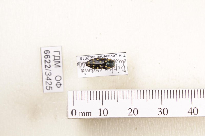 Сухое насекомое. Златка. Diphucrania duodecimmaculata (Fabricius, 1801). Классификация: Членистоногие Arthropoda, Насекомые Insecta, Жуки Coleoptera, Златки Buprestidae