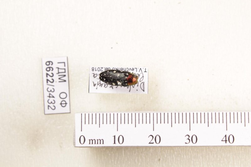 Сухое насекомое. Златка. Diphucrania leucosticta (Kirby, 1818). Классификация: Членистоногие Arthropoda, Насекомые Insecta, Жуки Coleoptera, Златки Buprestidae