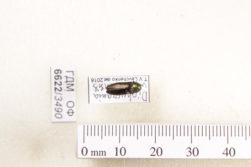 Сухое насекомое. Златка. Diphucrania wilsonensis (Barker, 2007). Классификация: Членистоногие Arthropoda, Насекомые Insecta, Жуки Coleoptera, Златки Buprestidae