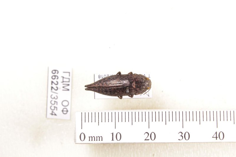 Сухое насекомое. Златка. Dicerca asperata (Laporte et Gory, 1837). Классификация: Членистоногие Arthropoda, Насекомые Insecta, Жуки Coleoptera, Златки Buprestidae