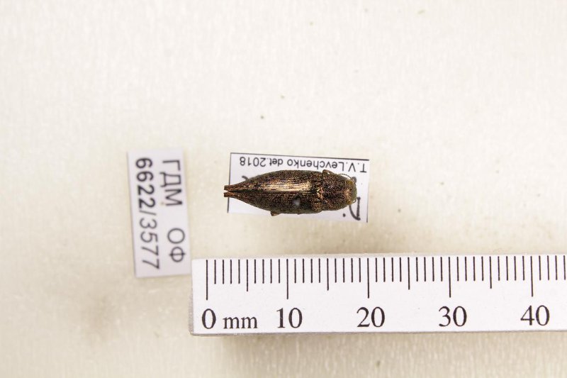 Сухое насекомое. Златка. Dicerca divaricata (Say, 1823). Классификация: Членистоногие Arthropoda, Насекомые Insecta, Жуки Coleoptera, Златки Buprestidae