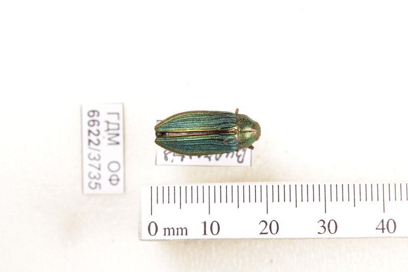 Сухое насекомое. Златка. Buprestis aurulenta Linnaeus, 1767. Классификация: Членистоногие Arthropoda, Насекомые Insecta, Жуки Coleoptera, Златки Buprestidae