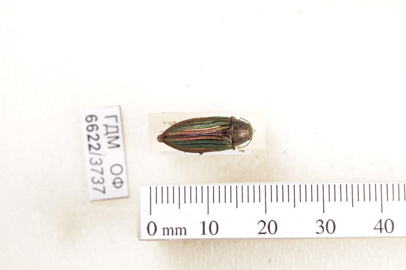 Сухое насекомое. Златка. Buprestis aurulenta Linnaeus, 1767. Классификация: Членистоногие Arthropoda, Насекомые Insecta, Жуки Coleoptera, Златки Buprestidae