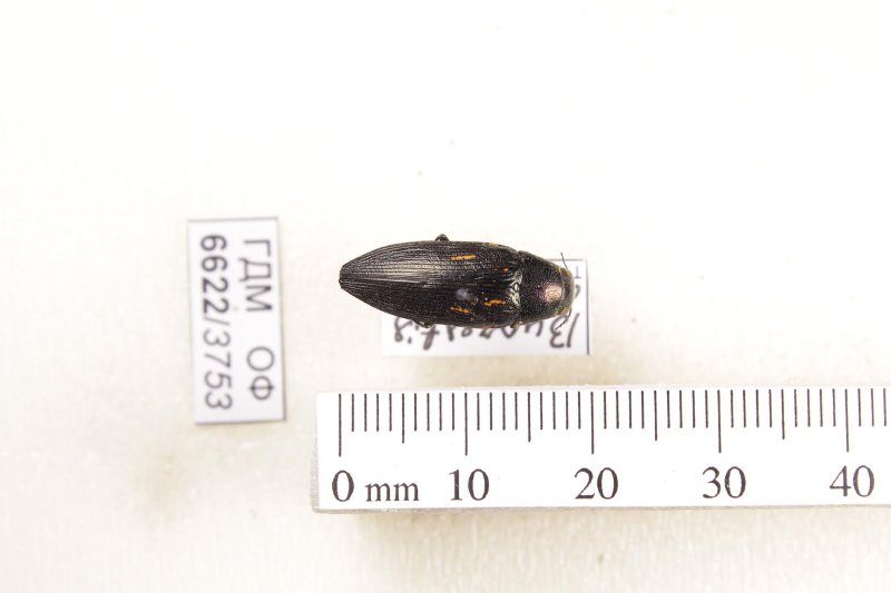 Сухое насекомое. Златка. Buprestis dalmatina Mannerheim, 1837. Классификация: Членистоногие Arthropoda, Насекомые Insecta, Жуки Coleoptera, Златки Buprestidae