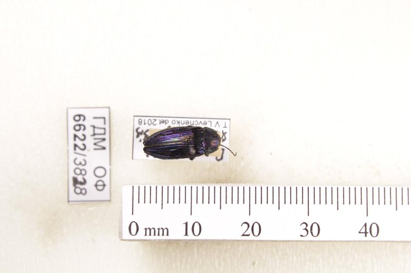 Сухое насекомое. Златка. Buprestis salisburyensis Herbst, 1801. Классификация: Членистоногие Arthropoda, Насекомые Insecta, Жуки Coleoptera, Златки Buprestidae