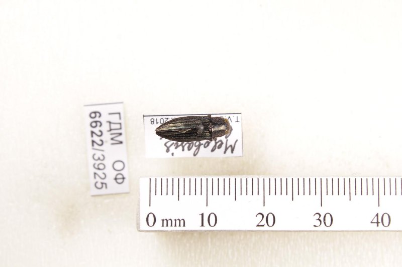 Сухое насекомое. Златка. Melobasis lathami (Laporte et Gory, 1837). Классификация: Членистоногие Arthropoda, Насекомые Insecta, Жуки Coleoptera, Златки Buprestidae