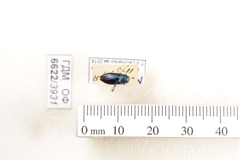 Сухое насекомое. Златка. Melobasis obscurella Thomson, 1879. Классификация: Членистоногие Arthropoda, Насекомые Insecta, Жуки Coleoptera, Златки Buprestidae