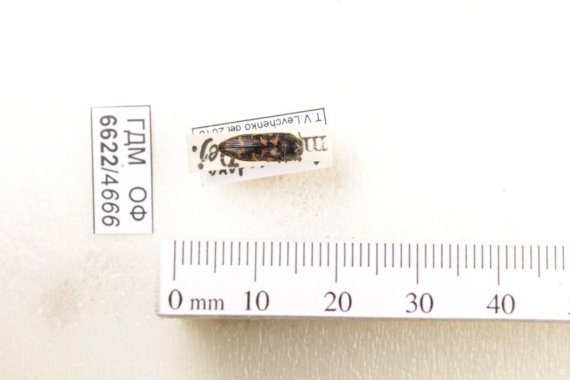 Сухое насекомое. Златка. Acmaeodera mima Gory, 1840. Классификация: Членистоногие Arthropoda, Насекомые Insecta, Жуки Coleoptera, Златки Buprestidae