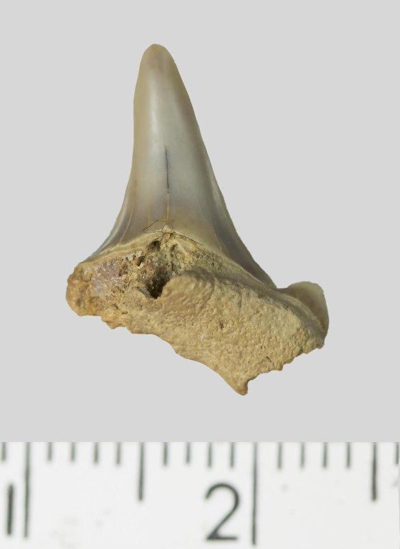Зуб. Акула. Cretolamna appendiculata (Agassiz, 1843). Классификация: Хордовые Chordata, Позвоночные Vertebrata, Хрящевые рыбы Chondrichthyes, Пластиножаберные Elasmobranchii