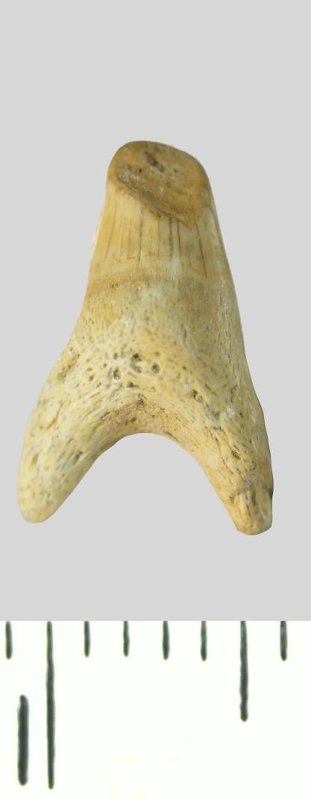 Зуб. Акула. Odontaspis macrorhiza (Cope) Leriche, 1902. Классификация: Хордовые Chordata, Позвоночные Vertebrata, Хрящевые рыбы Chondrichthyes, Пластиножаберные Elasmobranchii