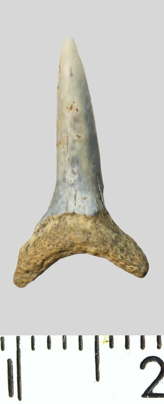 Зуб. Акула. Odontaspis whitei Arambourg, 1952. Классификация: Хордовые Chordata, Позвоночные Vertebrata, Хрящевые рыбы Chondrichthyes, Пластиножаберные Elasmobranchii