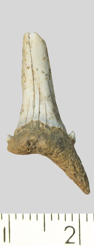 Зуб. Акула. Palaeohypotodus rutoti (Winkler, 1874). Классификация: Хордовые Chordata, Позвоночные Vertebrata, Хрящевые рыбы Chondrichthyes, Пластиножаберные Elasmobranchii