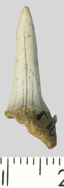 Зуб. Акула. Palaeohypotodus rutoti (Winkler, 1874). Классификация: Хордовые Chordata, Позвоночные Vertebrata, Хрящевые рыбы Chondrichthyes, Пластиножаберные Elasmobranchii