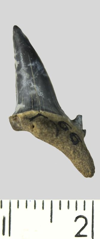 Зуб. Акула. Palaeohypotodus rutoti (Winkler, 1874). Классификация: Хордовые Chordata, Позвоночные Vertebrata, Хрящевые рыбы Chondrichthyes, Пластиножаберные Elasmobranchii