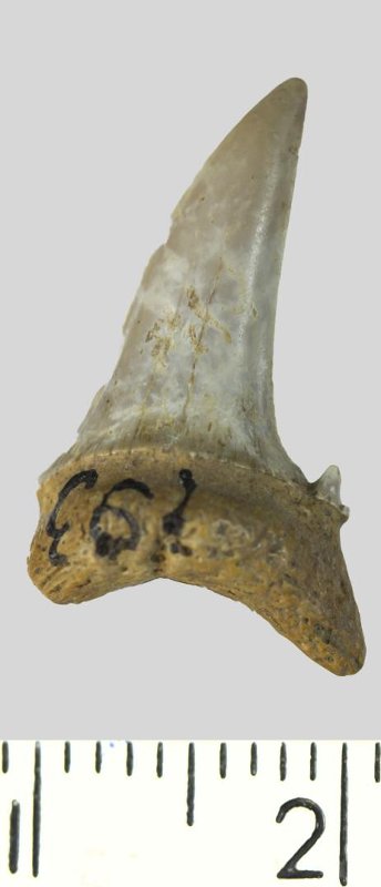 Зуб. Акула. Palaeohypotodus rutoti (Winkler, 1874). Классификация: Хордовые Chordata, Позвоночные Vertebrata, Хрящевые рыбы Chondrichthyes, Пластиножаберные Elasmobranchii