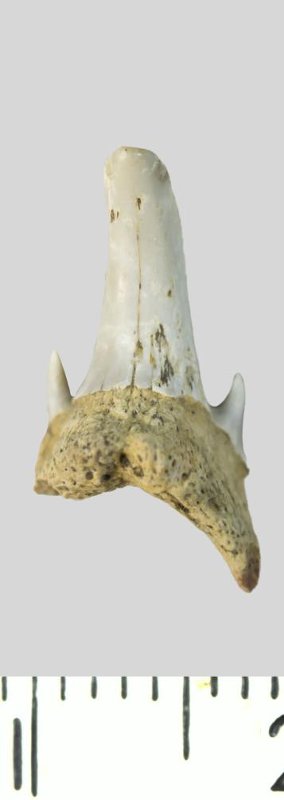 Зуб. Акула. Palaeohypotodus rutoti (Winkler, 1874). Классификация: Хордовые Chordata, Позвоночные Vertebrata, Хрящевые рыбы Chondrichthyes, Пластиножаберные Elasmobranchii