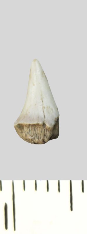 Зуб (фрагмент). Акула. Palaeohypotodus rutoti (Winkler, 1874). Классификация: Хордовые Chordata, Позвоночные Vertebrata, Хрящевые рыбы Chondrichthyes, Пластиножаберные Elasmobranchii