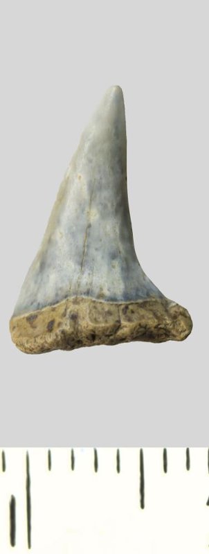 Зуб (фрагмент). Акула. Palaeohypotodus rutoti (Winkler, 1874). Классификация: Хордовые Chordata, Позвоночные Vertebrata, Хрящевые рыбы Chondrichthyes, Пластиножаберные Elasmobranchii