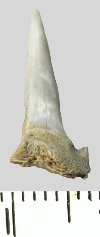 Зуб (фрагмент). Акула. Palaeohypotodus rutoti (Winkler, 1874). Классификация: Хордовые Chordata, Позвоночные Vertebrata, Хрящевые рыбы Chondrichthyes, Пластиножаберные Elasmobranchii