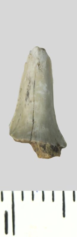 Зуб (фрагмент). Акула. Palaeohypotodus rutoti (Winkler, 1874). Классификация: Хордовые Chordata, Позвоночные Vertebrata, Хрящевые рыбы Chondrichthyes, Пластиножаберные Elasmobranchii