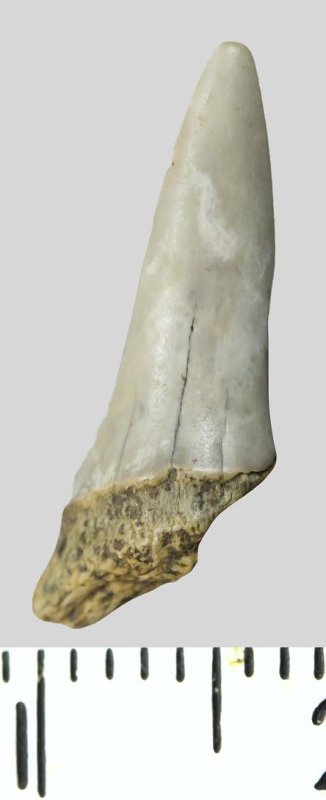 Зуб (фрагмент). Акула. Palaeohypotodus rutoti (Winkler, 1874). Классификация: Хордовые Chordata, Позвоночные Vertebrata, Хрящевые рыбы Chondrichthyes, Пластиножаберные Elasmobranchii