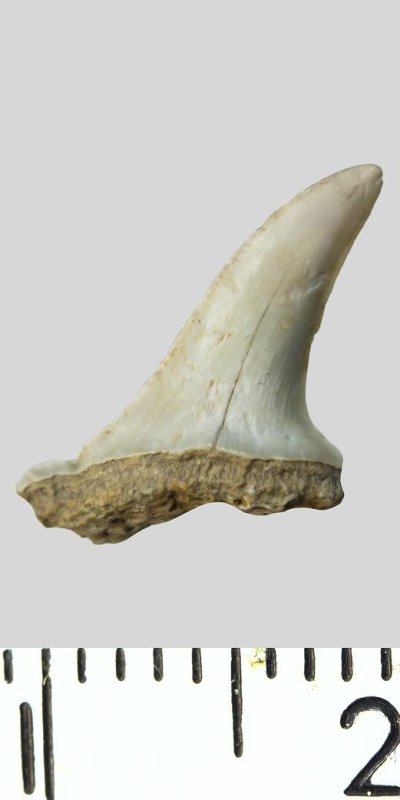 Зуб (фрагмент). Акула. Palaeohypotodus rutoti (Winkler, 1874). Классификация: Хордовые Chordata, Позвоночные Vertebrata, Хрящевые рыбы Chondrichthyes, Пластиножаберные Elasmobranchii