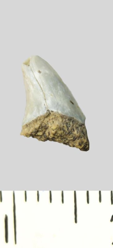 Зуб (фрагмент). Акула. Palaeohypotodus rutoti (Winkler, 1874). Классификация: Хордовые Chordata, Позвоночные Vertebrata, Хрящевые рыбы Chondrichthyes, Пластиножаберные Elasmobranchii