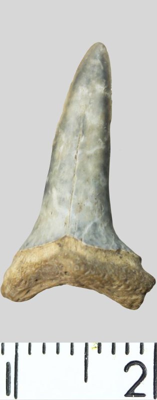 Зуб. Акула. Striatolamia striata (Winkler, 1874). Классификация: Хордовые Chordata, Позвоночные Vertebrata, Хрящевые рыбы Chondrichthyes, Пластиножаберные Elasmobranchii