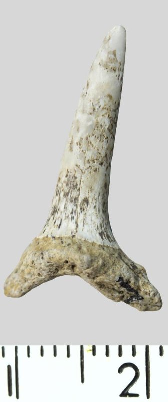 Зуб. Акула. Striatolamia striata (Winkler, 1874). Классификация: Хордовые Chordata, Позвоночные Vertebrata, Хрящевые рыбы Chondrichthyes, Пластиножаберные Elasmobranchii