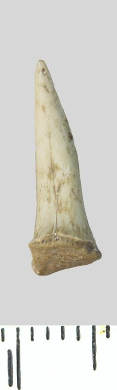 Зуб (фрагмент). Акула. Palaeohypotodus rutoti (Winkler, 1874). Классификация: Хордовые Chordata, Позвоночные Vertebrata, Хрящевые рыбы Chondrichthyes, Пластиножаберные Elasmobranchii