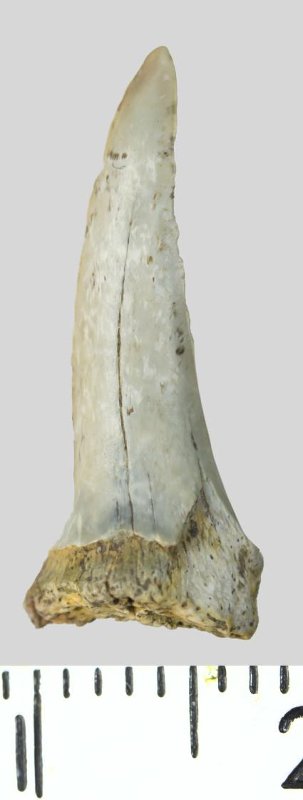 Зуб (фрагмент). Акула. Palaeohypotodus rutoti (Winkler, 1874). Классификация: Хордовые Chordata, Позвоночные Vertebrata, Хрящевые рыбы Chondrichthyes, Пластиножаберные Elasmobranchii