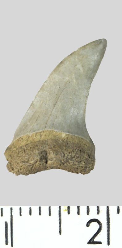 Зуб (фрагмент). Акула. Palaeohypotodus rutoti (Winkler, 1874). Классификация: Хордовые Chordata, Позвоночные Vertebrata, Хрящевые рыбы Chondrichthyes, Пластиножаберные Elasmobranchii