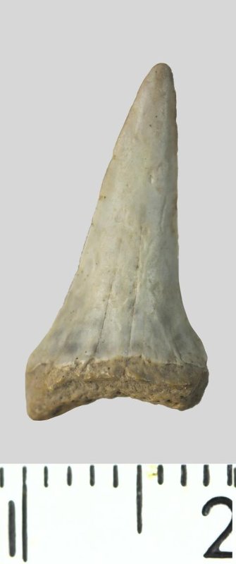 Зуб (фрагмент). Акула. Palaeohypotodus rutoti (Winkler, 1874). Классификация: Хордовые Chordata, Позвоночные Vertebrata, Хрящевые рыбы Chondrichthyes, Пластиножаберные Elasmobranchii