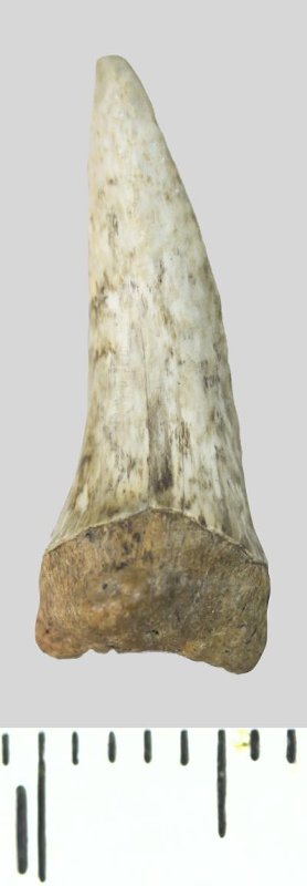 Зуб. Акула. Palaeohypotodus rutoti (Winkler, 1874). Классификация: Хордовые Chordata, Позвоночные Vertebrata, Хрящевые рыбы Chondrichthyes, Пластиножаберные Elasmobranchii