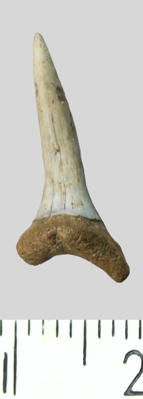 Зуб. Акула. Striatolamia striata (Winkler, 1874). Классификация: Хордовые Chordata, Позвоночные Vertebrata, Хрящевые рыбы Chondrichthyes, Пластиножаберные Elasmobranchii