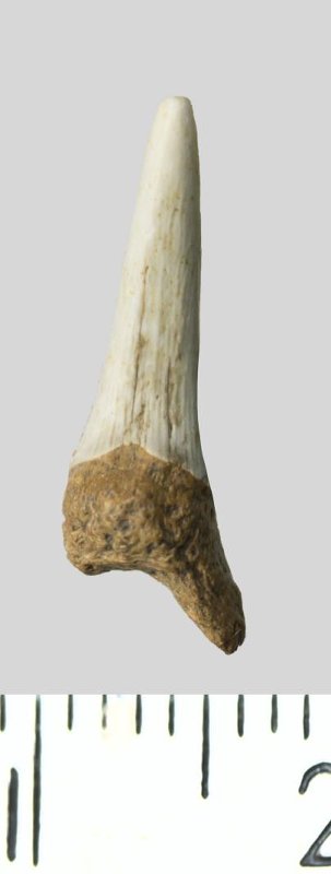 Зуб. Акула. Striatolamia striata (Winkler, 1874). Классификация: Хордовые Chordata, Позвоночные Vertebrata, Хрящевые рыбы Chondrichthyes, Пластиножаберные Elasmobranchii