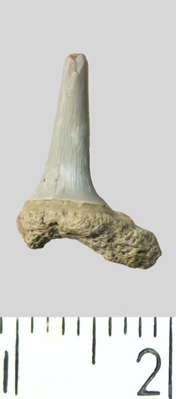 Зуб. Акула. Striatolamia striata (Winkler, 1874). Классификация: Хордовые Chordata, Позвоночные Vertebrata, Хрящевые рыбы Chondrichthyes, Пластиножаберные Elasmobranchii
