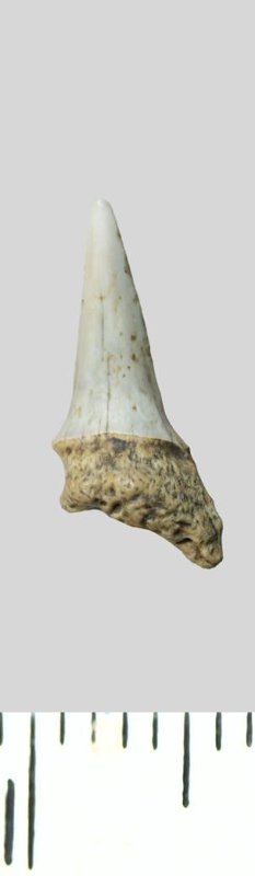 Зуб. Акула. Striatolamia striata (Winkler, 1874). Классификация: Хордовые Chordata, Позвоночные Vertebrata, Хрящевые рыбы Chondrichthyes, Пластиножаберные Elasmobranchii