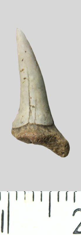 Зуб. Акула. Striatolamia striata (Winkler, 1874). Классификация: Хордовые Chordata, Позвоночные Vertebrata, Хрящевые рыбы Chondrichthyes, Пластиножаберные Elasmobranchii