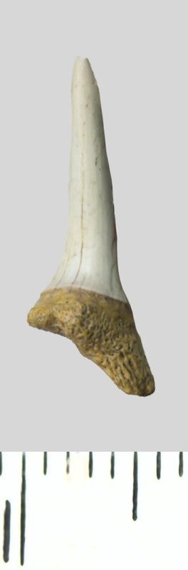Зуб. Акула. Striatolamia striata (Winkler, 1874). Классификация: Хордовые Chordata, Позвоночные Vertebrata, Хрящевые рыбы Chondrichthyes, Пластиножаберные Elasmobranchii