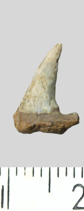 Зуб. Акула. Striatolamia striata (Winkler, 1874). Классификация: Хордовые Chordata, Позвоночные Vertebrata, Хрящевые рыбы Chondrichthyes, Пластиножаберные Elasmobranchii