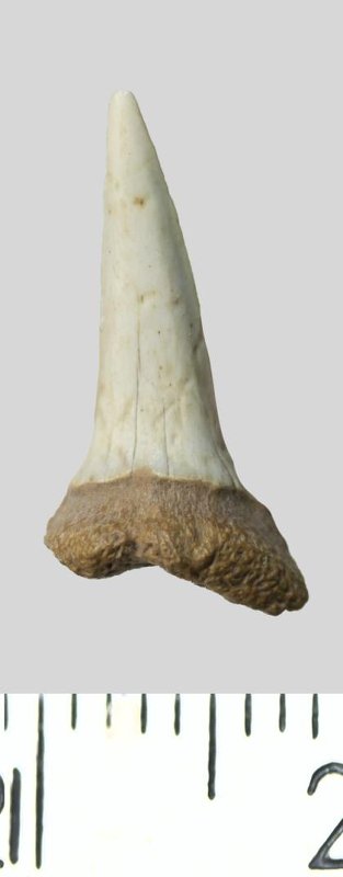 Зуб. Акула. Striatolamia striata (Winkler, 1874). Классификация: Хордовые Chordata, Позвоночные Vertebrata, Хрящевые рыбы Chondrichthyes, Пластиножаберные Elasmobranchii